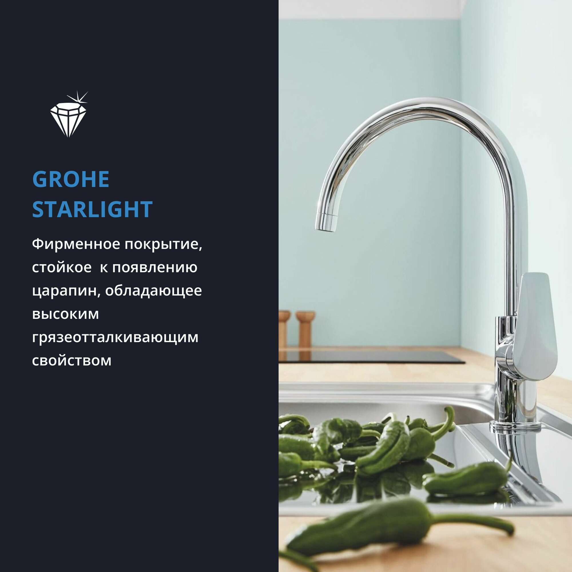 Смеситель Grohe BauEdge 31367001 для кухни, однозахватный, поворотный излив, хром