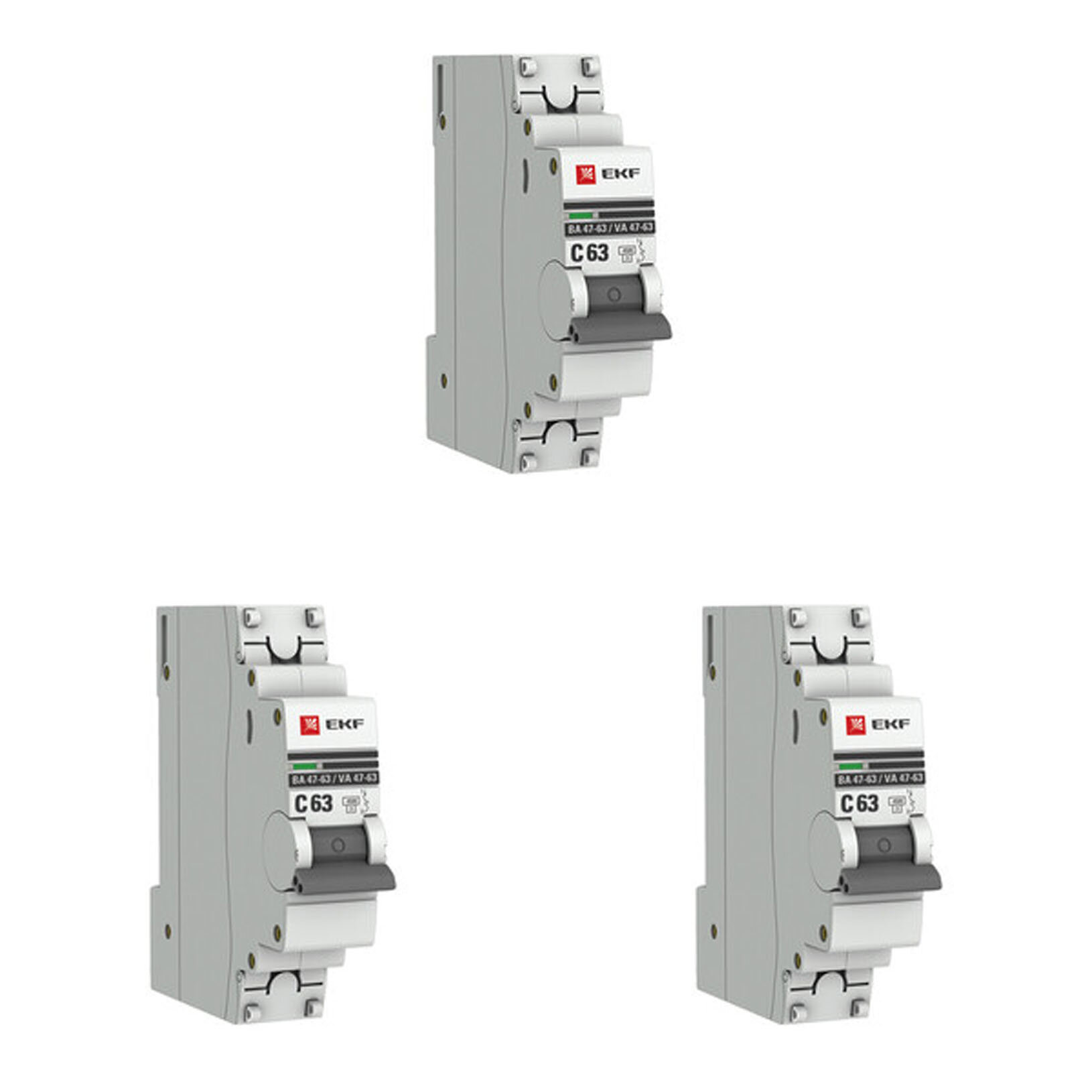 Купить Автоматический выключатель EKF PROxima ВА 47-63 (mcb4763-1-63C-pro) 1P 63А тип АС 4,5 кА 400 В на DIN-рейку (3 шт.)