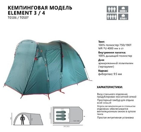 Палатка 3-х местная кемпинговая BTrace Element 3 интересное: