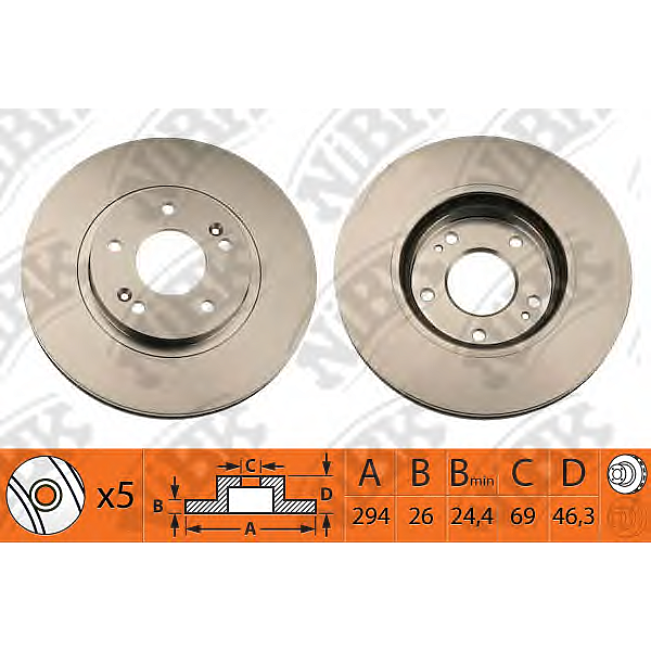 NIBK RN1209 Торм.диск пер.вент.[294x26] 5 отв. 2шт