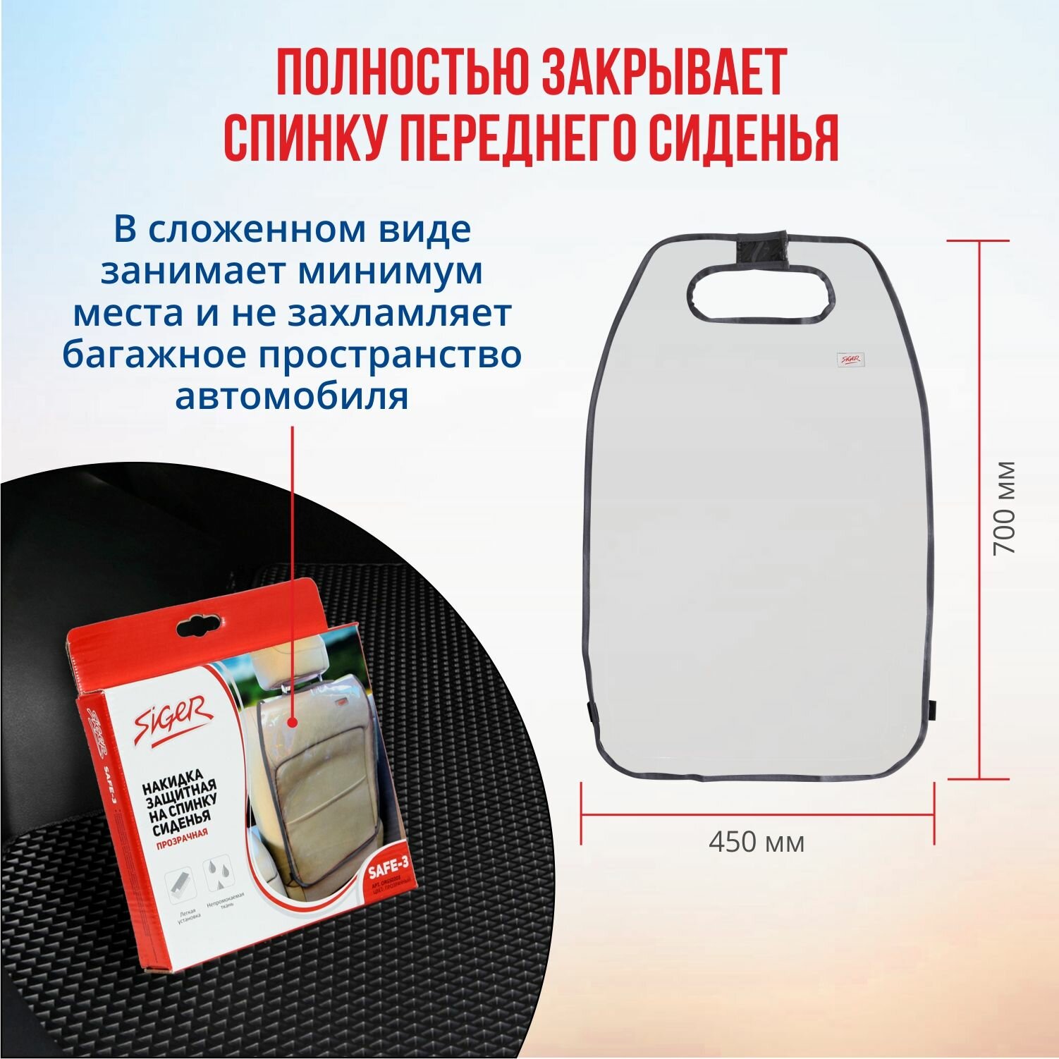 Защита Спинки Переднего Сиденья Siger Safe-3 Без Карманов Прозрачная AZARD арт. ORGS0203
