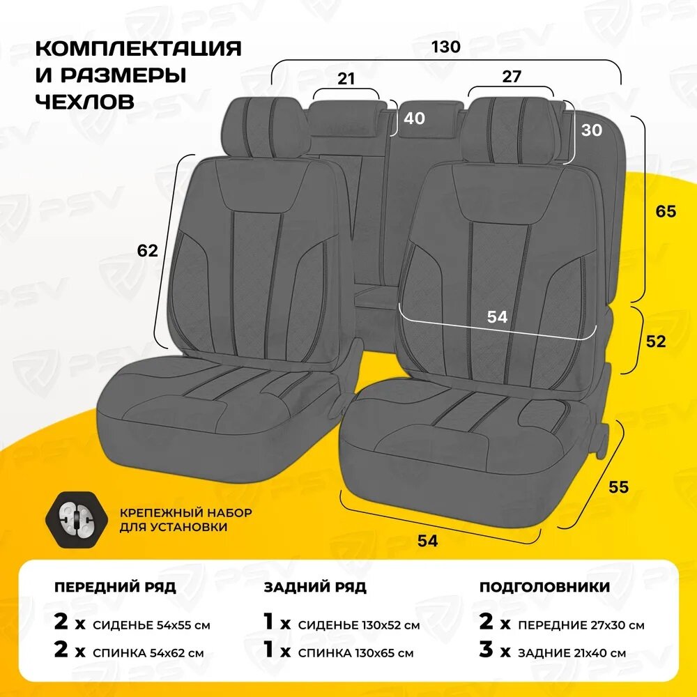 Накидки универсальные комплект на весь салон PSV Hornet (Черный) велюр + экокожа, 132560
