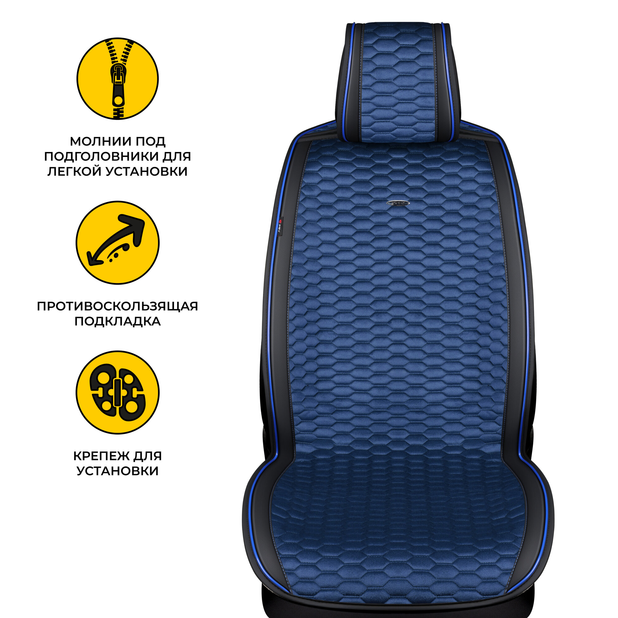 СохранитьНакидка на сиденье PSV Hornet передняя вельвет/экокожа 2 шт. черно-синяя PSV 134422 | цена за 1 шт интересное: