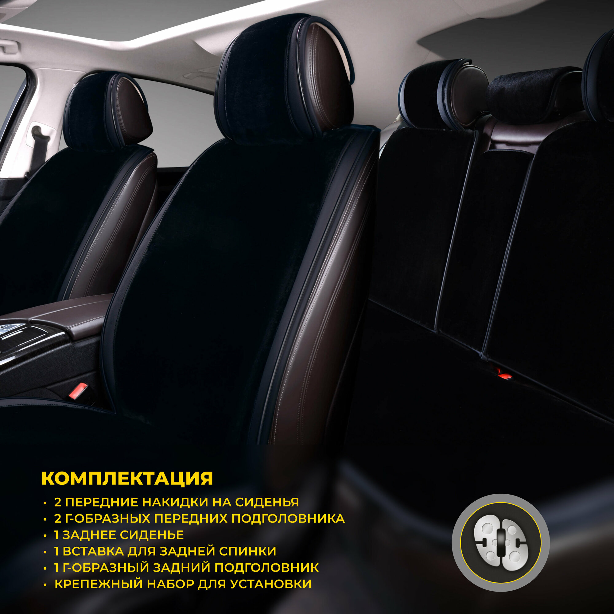 Накидка меховая в авто PSV Brink Mutton 128x56/47x25 (Черный/Кант красный) комплект на весь салон 134666 на весь салон