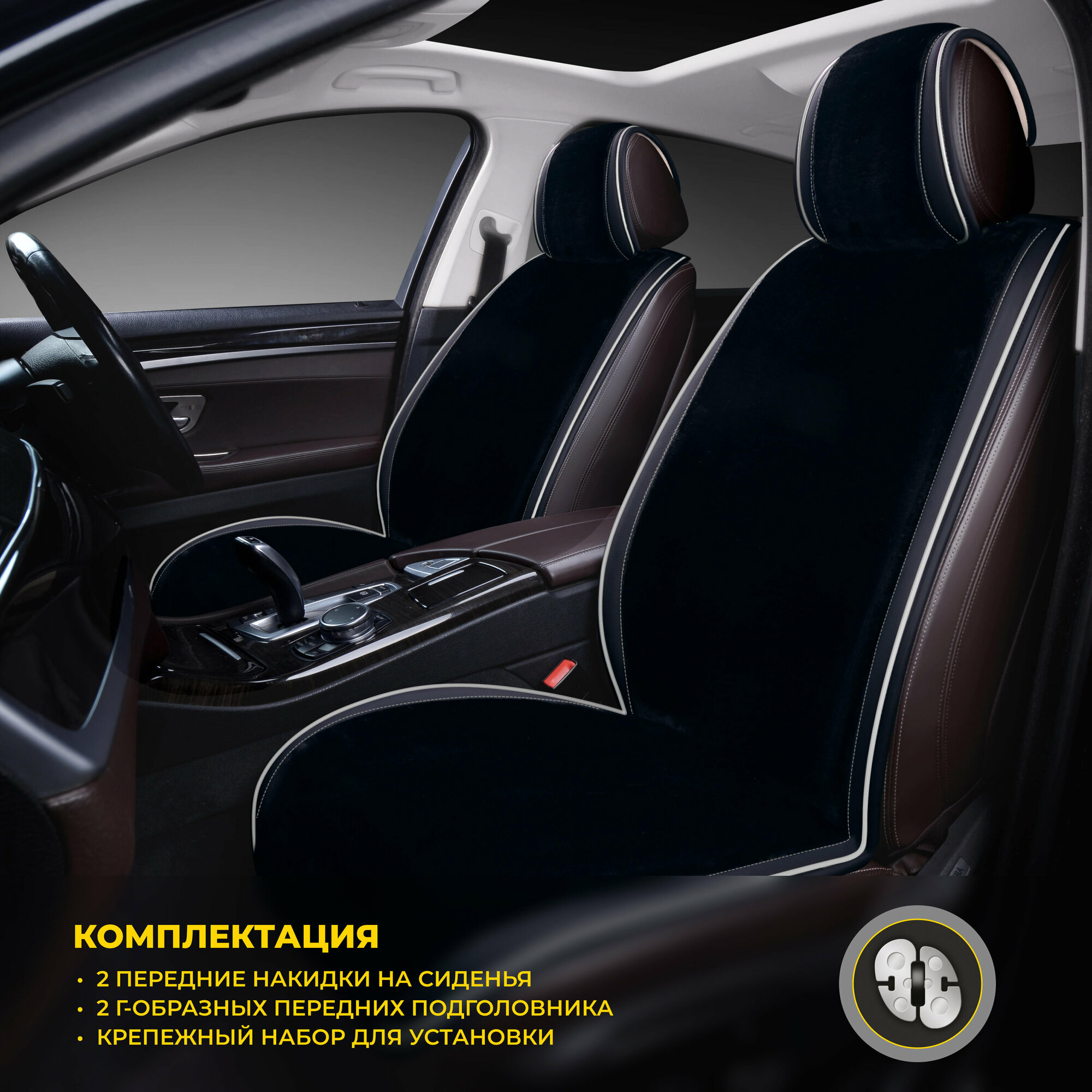 Накидки PSV искусственный мех Brink Mutton 2 FRONT 128x56/47x25 (Черный), 2 шт.