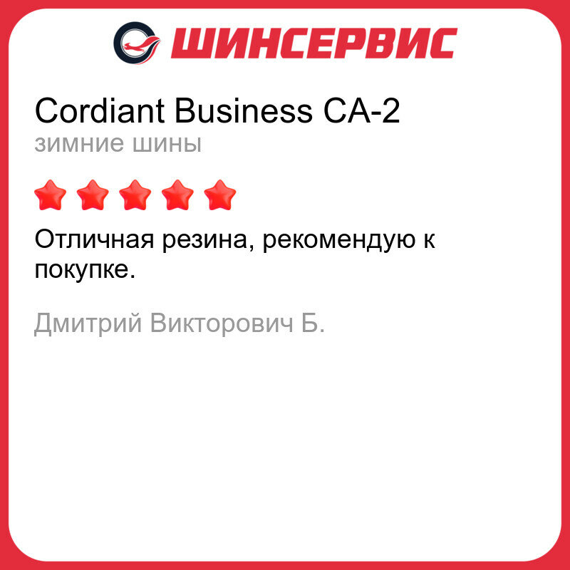 Ниже Вы можете прочитать отзывы на Зимняя нешипованная шина Cordiant Business CA-2 185/75 R16C 104/102Q, ознакомится с подробными характеристиками, посмотреть интересные обзоры и фотографии на Зимняя нешипованная шина Cordiant Business CA-2 185/75 R16C 104/102Q.