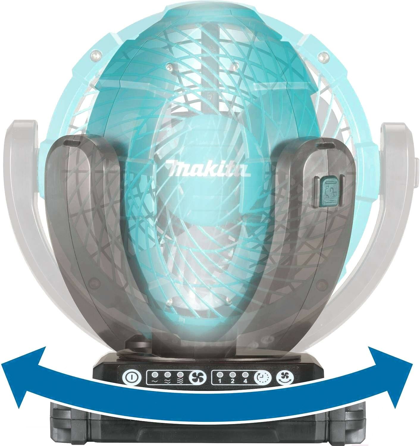 СохранитьНастольный вентилятор Makita DCF102Z, blue (3 скорости, управление: электронное, таймер, лопасти: 18 см) интересное: