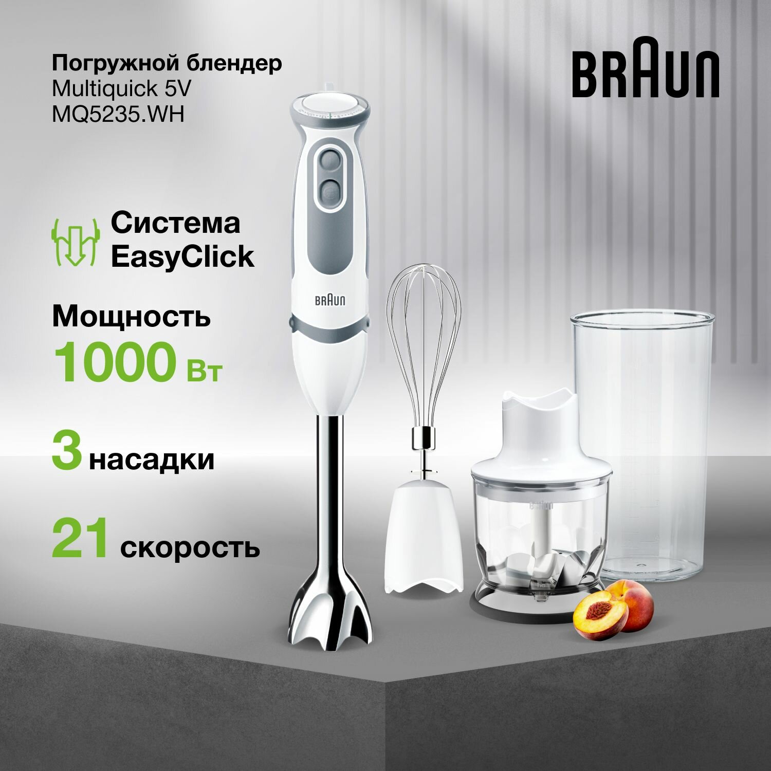 Купить Блендер Braun MQ 5235 WH погружной с насадками измельчитель и венчик