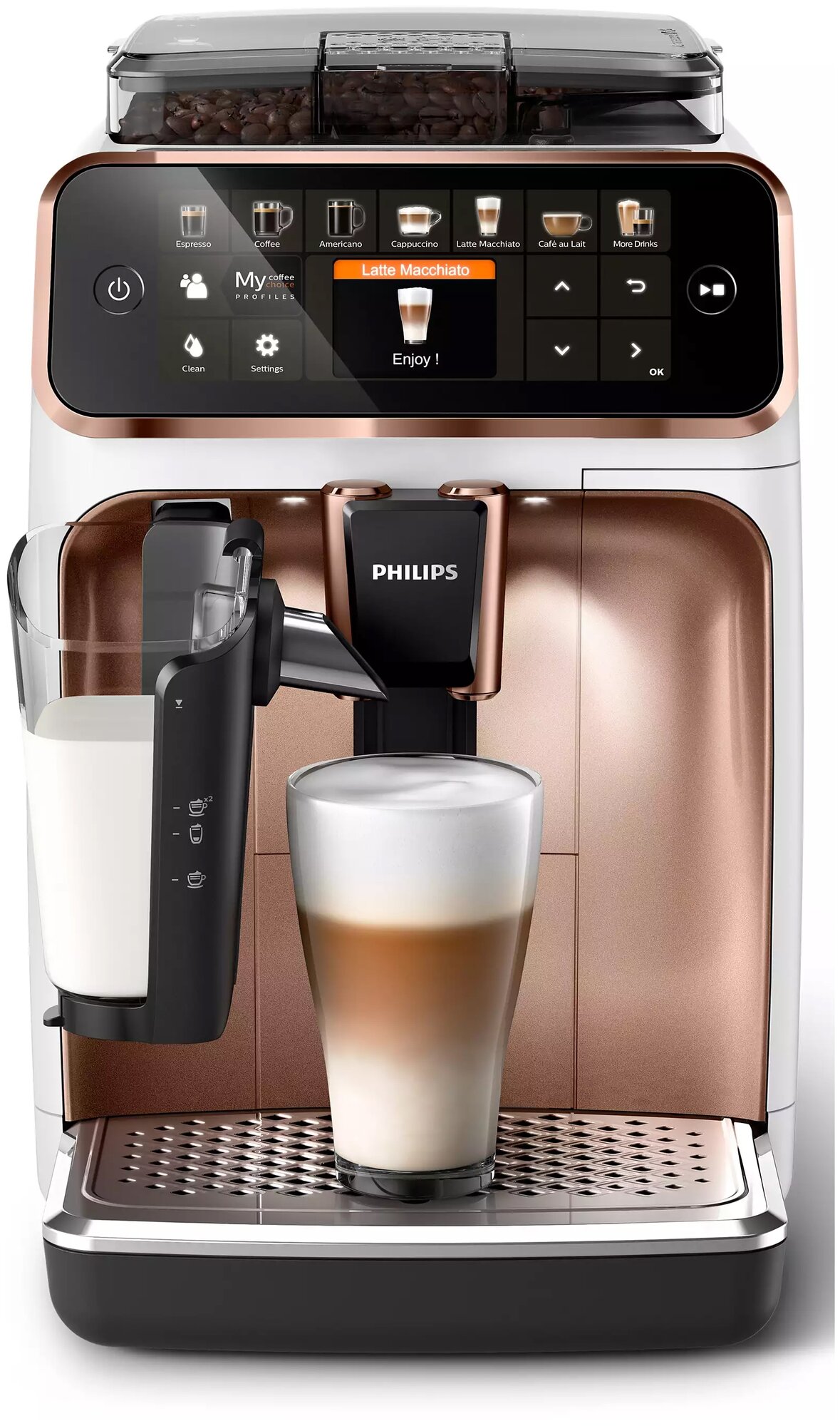 Купить Автоматическая кофемашина Philips 5400 Series EP5443/70 LatteGo, RU, белый/золотистый