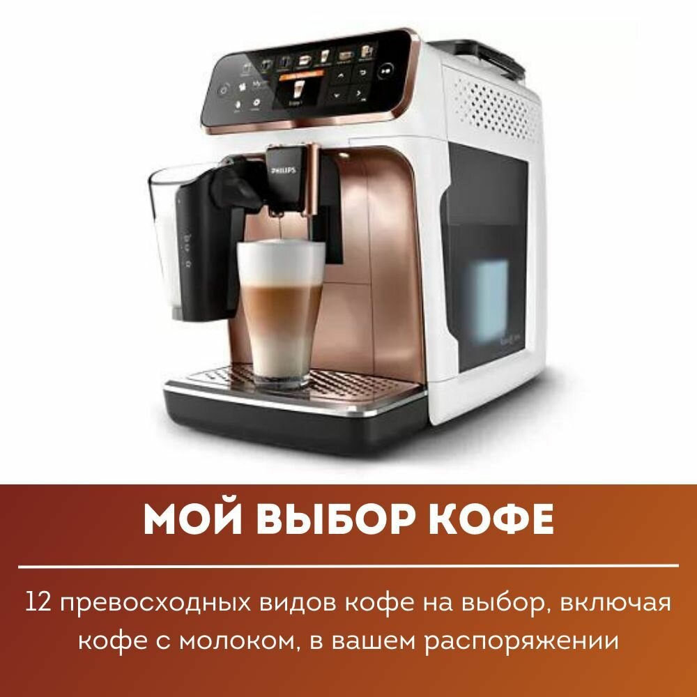 СохранитьАвтоматическая кофемашина Philips 5400 Series EP5443/70 LatteGo, RU, белый/золотистый интересное: