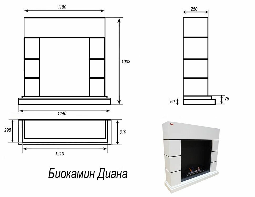 Биокамин FireBird диана, МДФ;Металл, белый, 124x100,3x31 см. интересное: