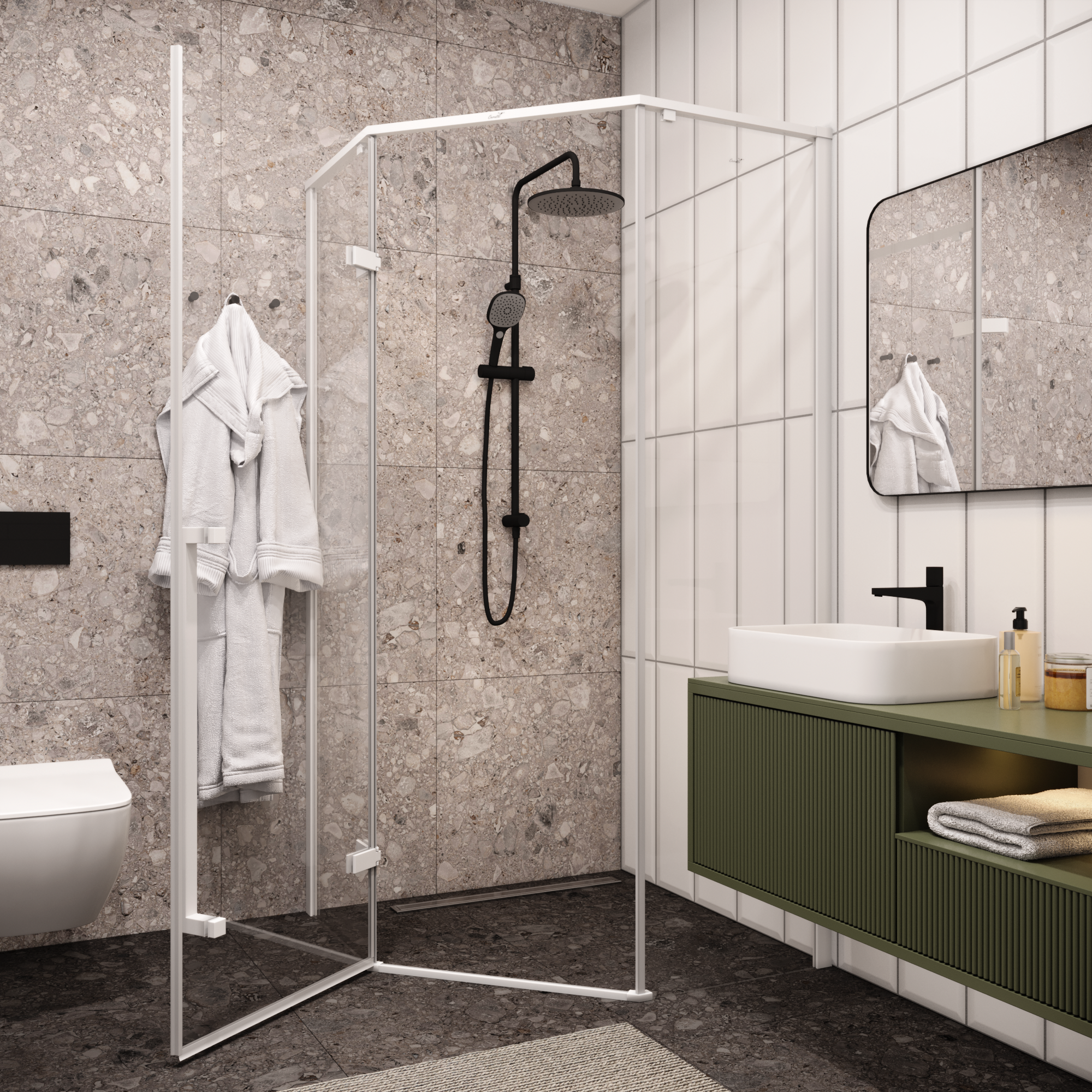 Душевой уголок Ceruttispa C3AWD 87x87 см, профиль белый матовый, стекло рифленое