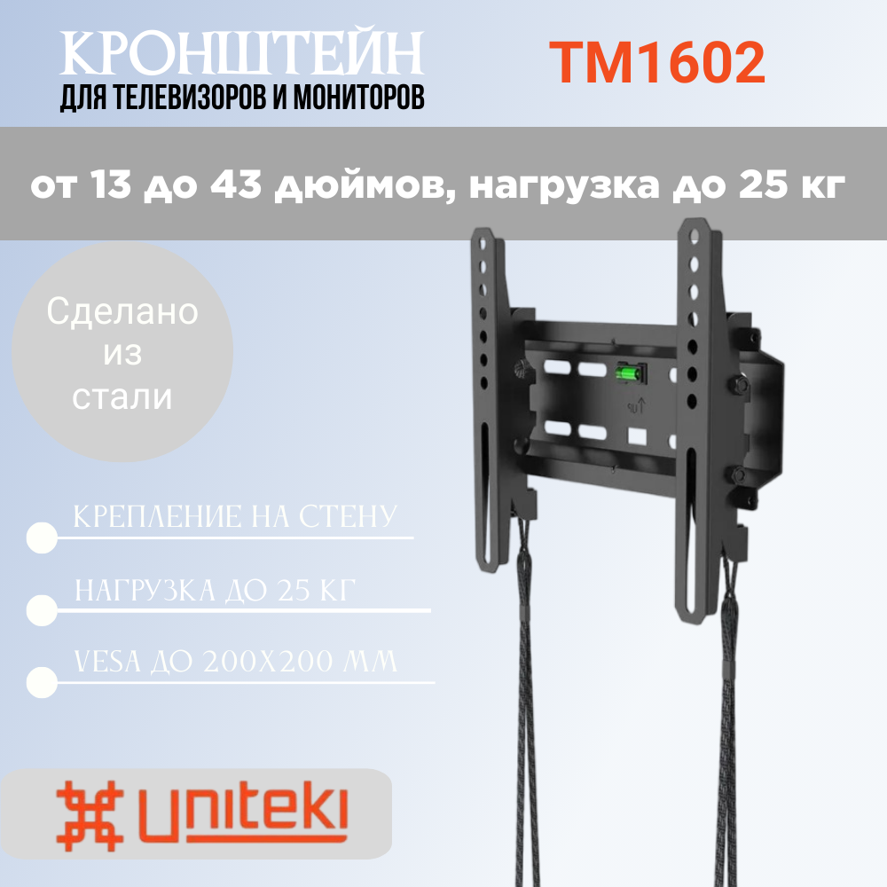 СохранитьНастенный наклонный кронштейн с минимальным расстоянием до стены для телевизоров с диагональю от 23 до 42 дюймов Uniteki TM1602 (чёрный) интересное: