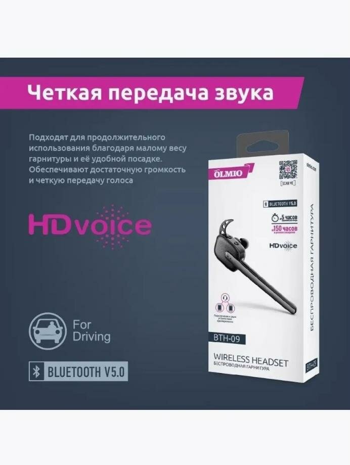 Bluetooth-гарнитура OLMIO BTH-09, black