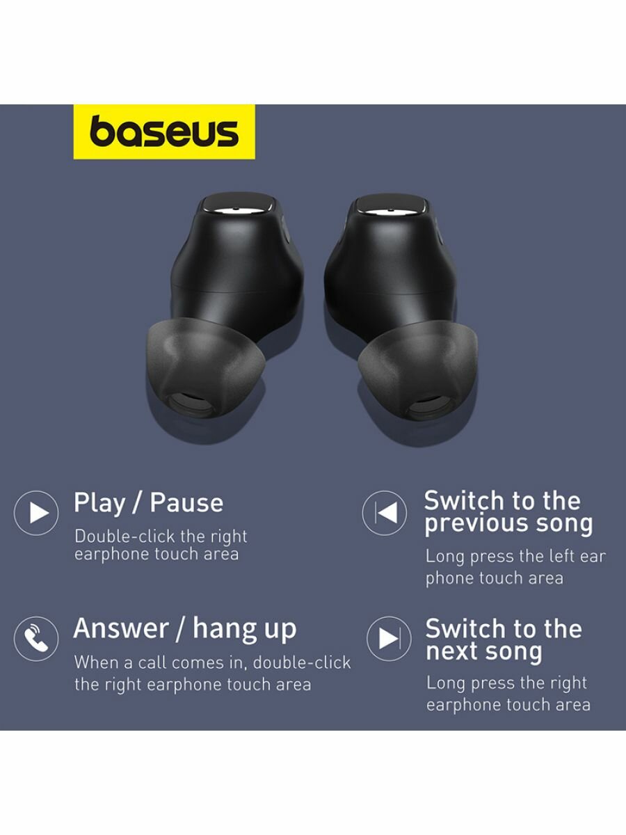 Мобильная Bluetooth-гарнитура TWS Baseus Encok WM01 BT5.0/60mAh (300mAh)/6ч (NGWM01-01) черная