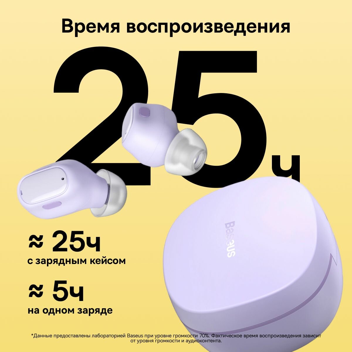 Гарнитура беспроводная Baseus Encok WM01, purple BT v.5.3, 5/22ч, Type-C
