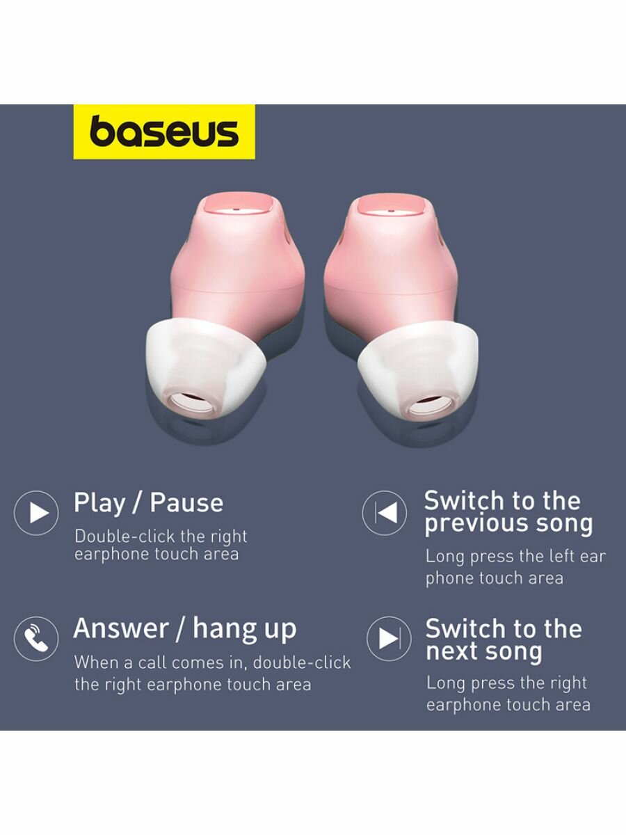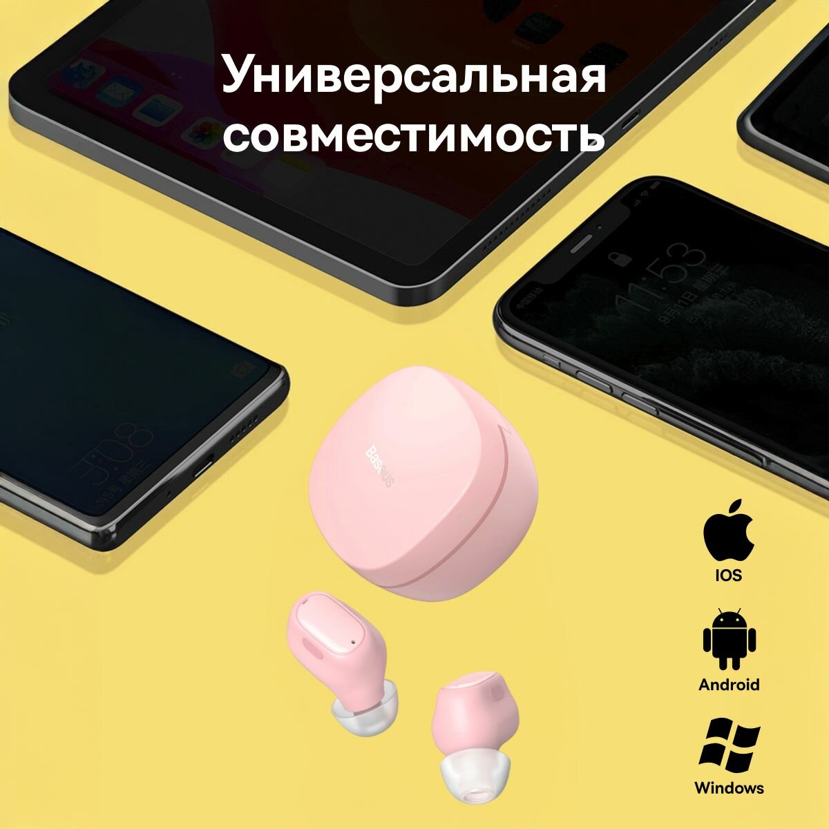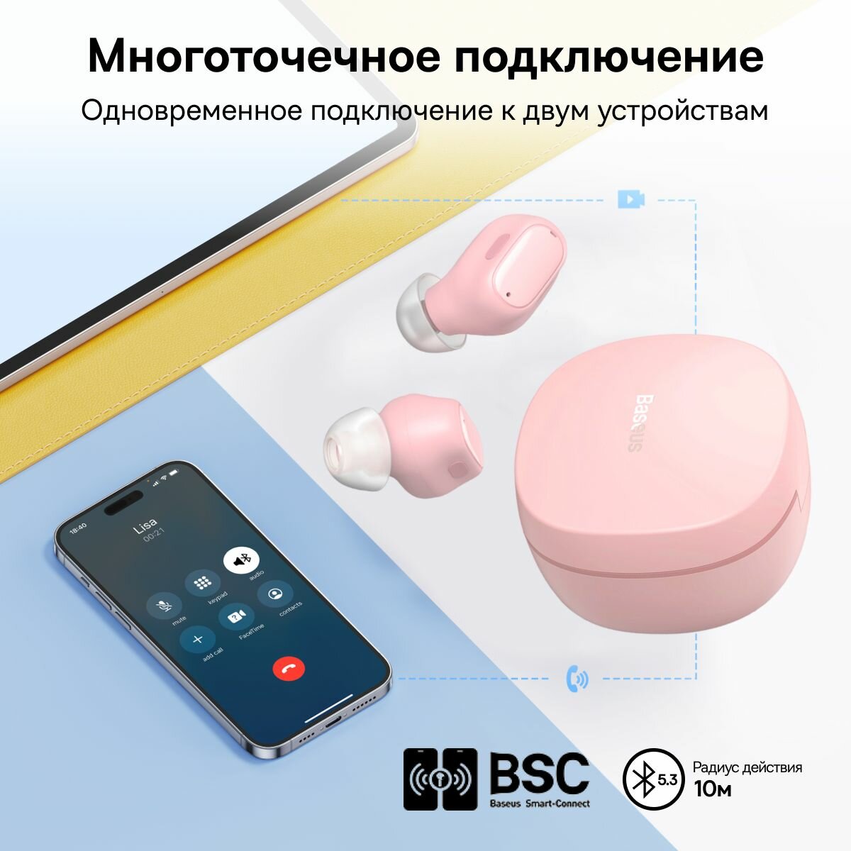 Беспроводные наушники Baseus "WM01" с шумоподавлением и влагозащитой (Розовые)