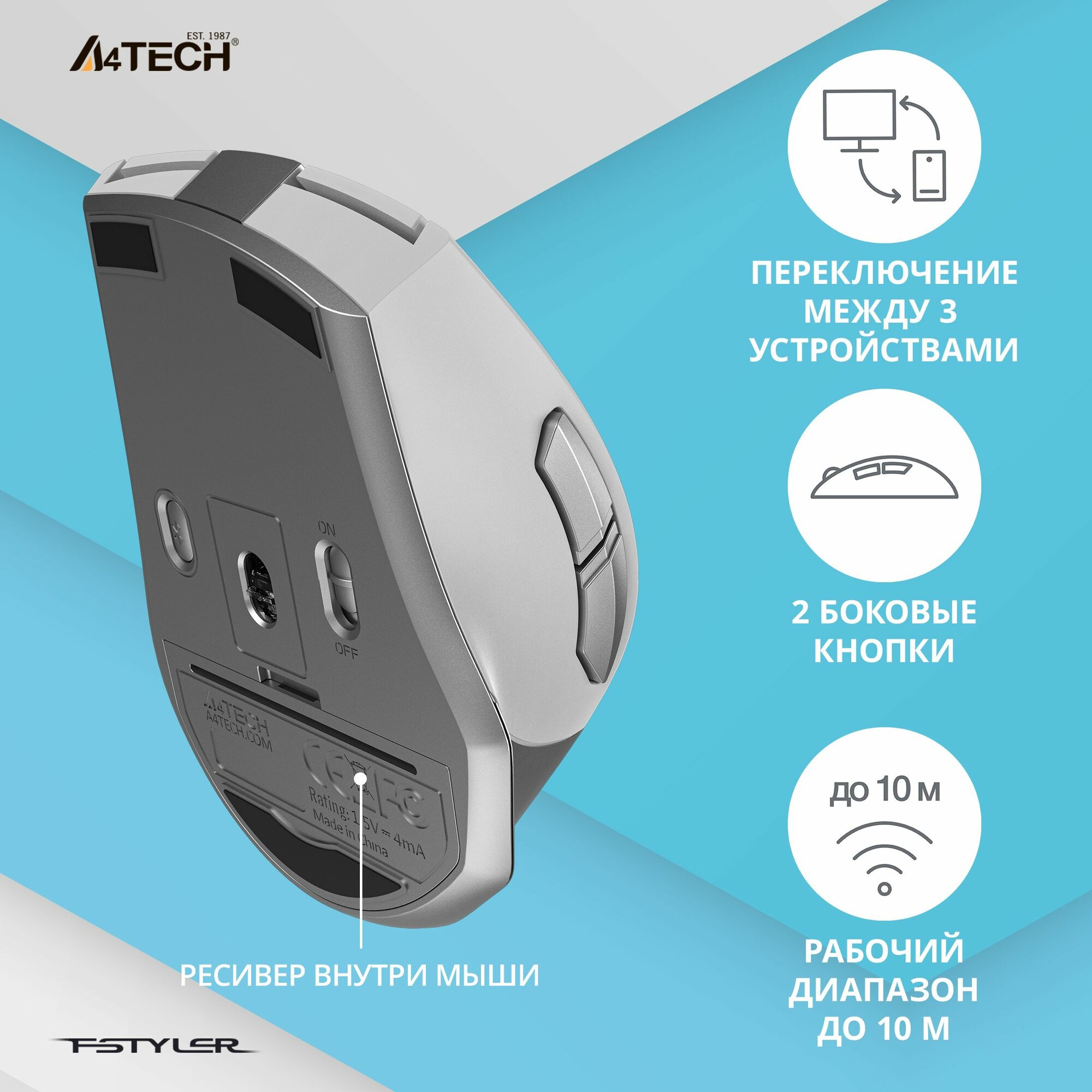Мышь A4TECH Fstyler FB35, оптическая, беспроводная, USB, белый и серый [fb35 icy white]