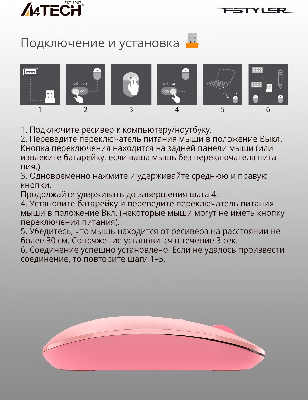 Беспроводная мышь A4Tech Fstyler FG20, розовый