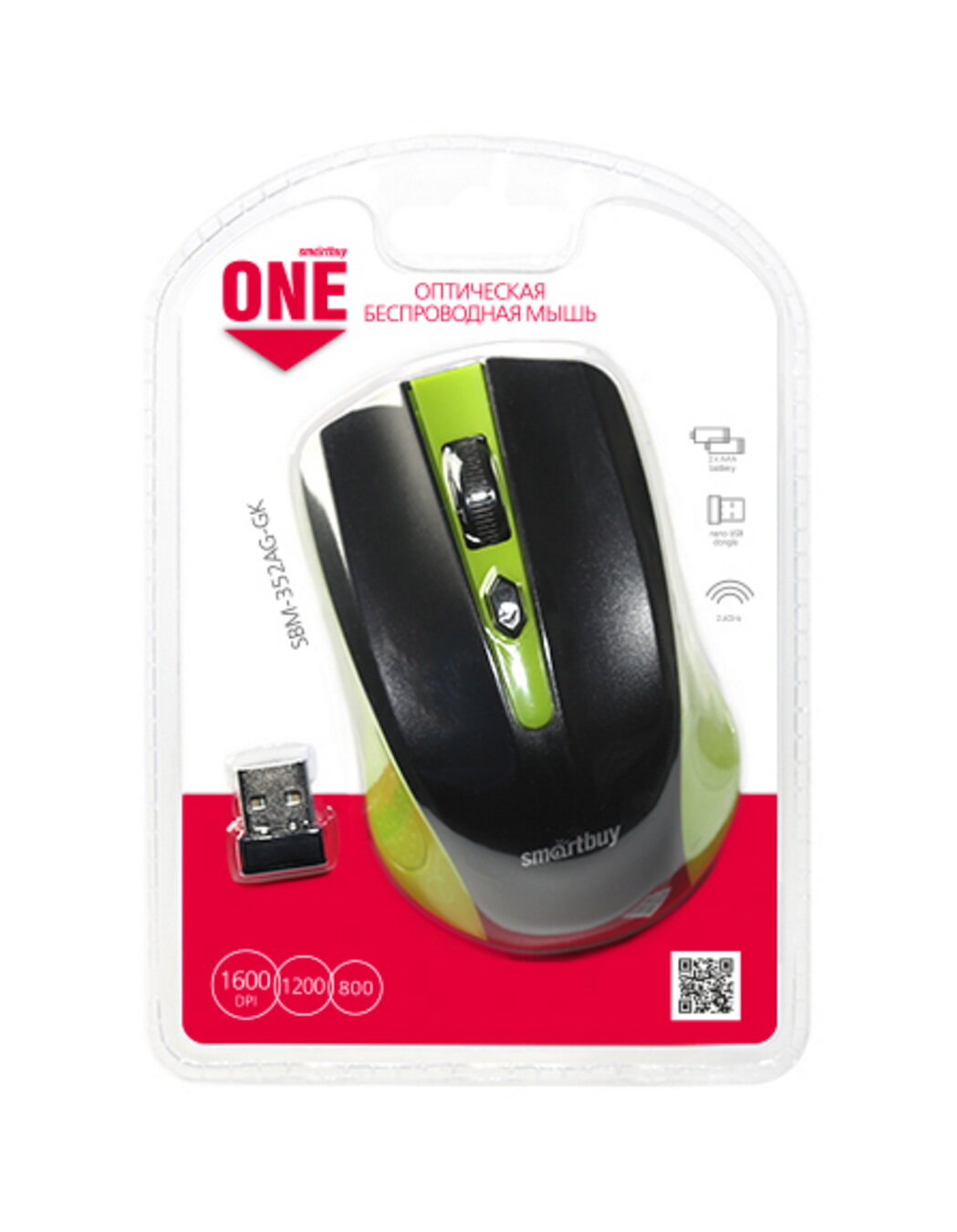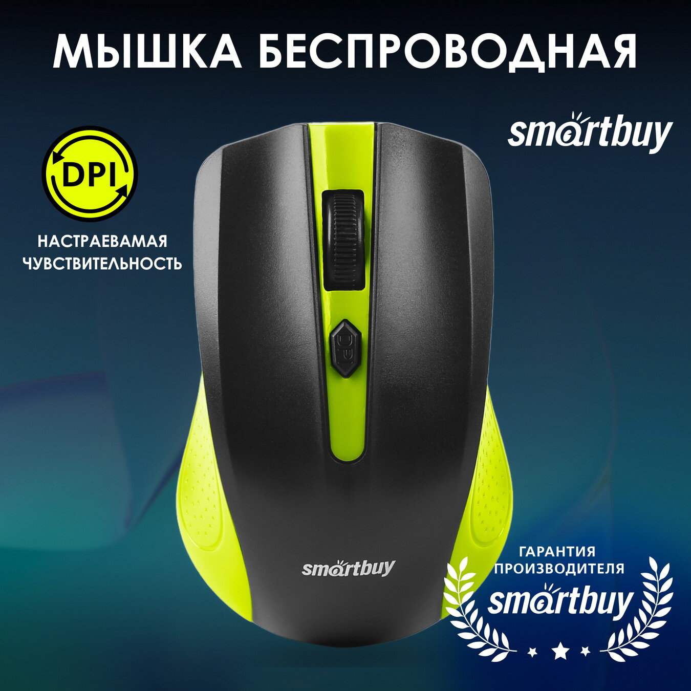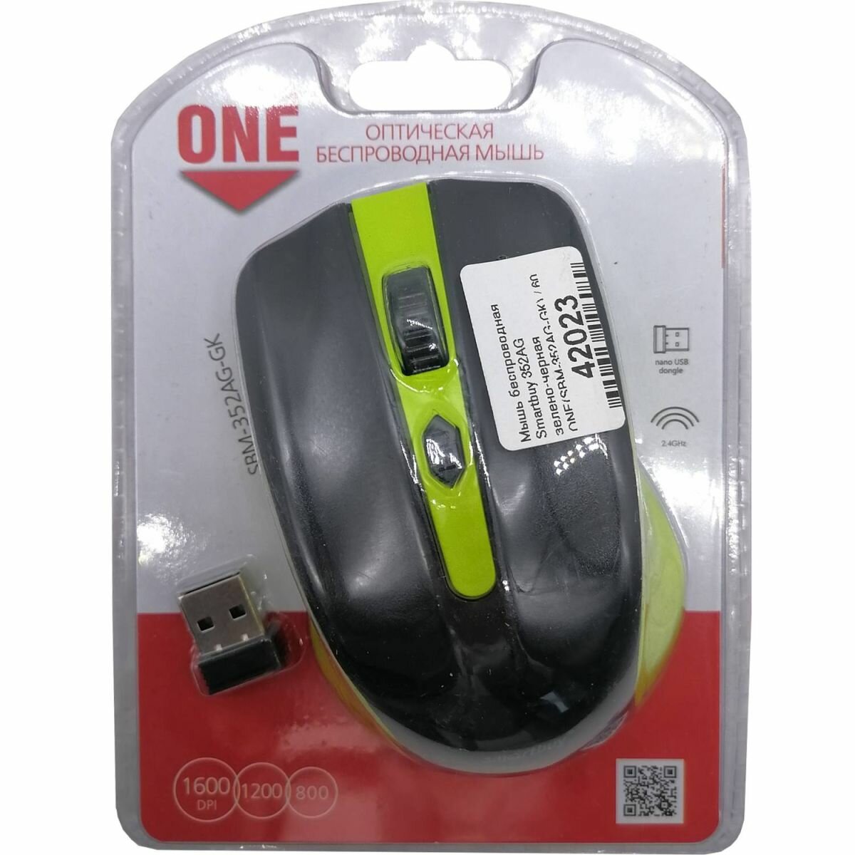 Мышь оптическая беспроводная SmartBuy ONE 352, зеленая и, черная, 3 кнопки+колесо (SBM-352AG-GK)