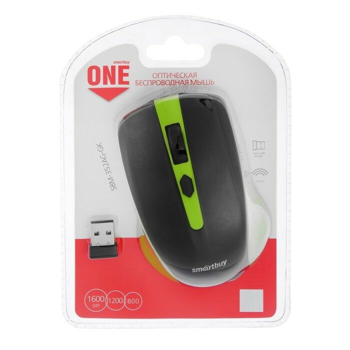 Мышь компьютерная Smartbuy ONE 352 зелено-черная WLS (SBM-352AG-GK)/60, 1801631