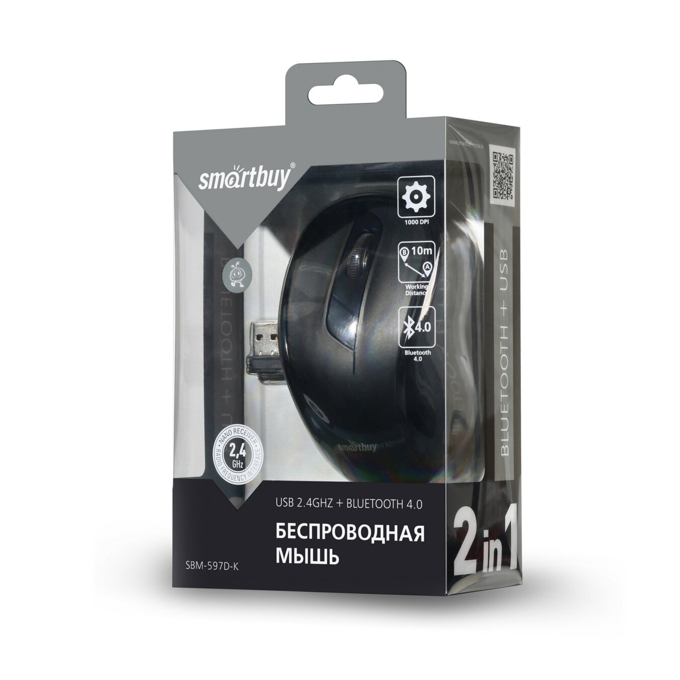 Мышь беспроводная Dual Bluetooth+USB Smartbuy SBM-597D-K черная (SBM-597D-K)/40/