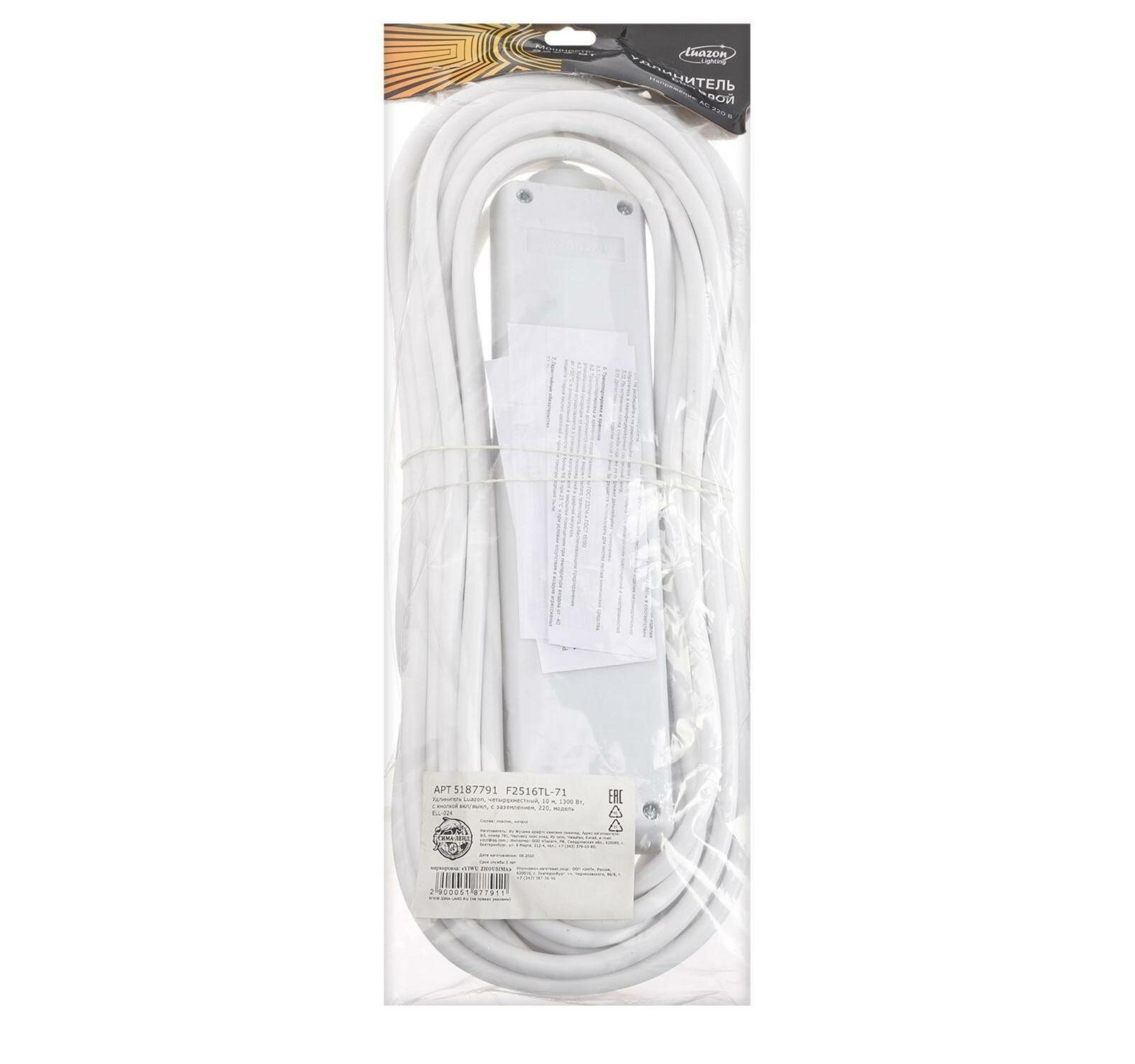 Сетевой фильтр белый Luazon Lighting, 6 розеток, 5 м, 2200 Вт, 3 х 0.75 мм2, 10 А, 220 В