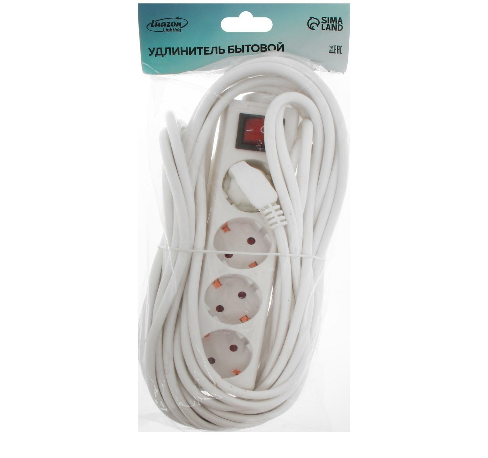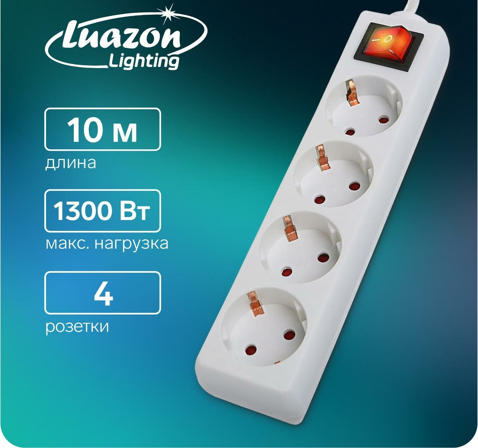 Купить Удлинитель Luazon Lighting, 4 розетки, 10 м, 6 А, 1300 Вт, 3х0.75 мм2, с з/к, с выкл., Б 5187791