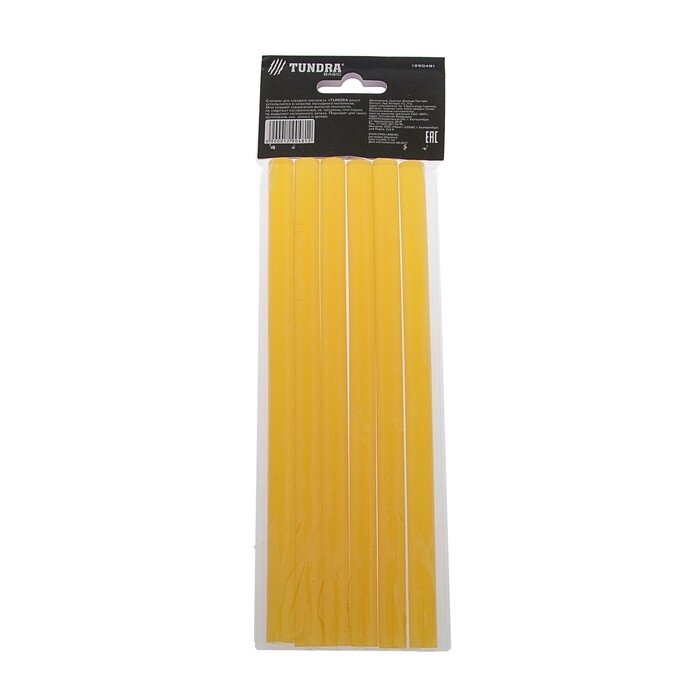 Клеевые стержни TUNDRA. 11 х 200 мм. желтые (по бумаге и дереву). 6 шт. 1290481
