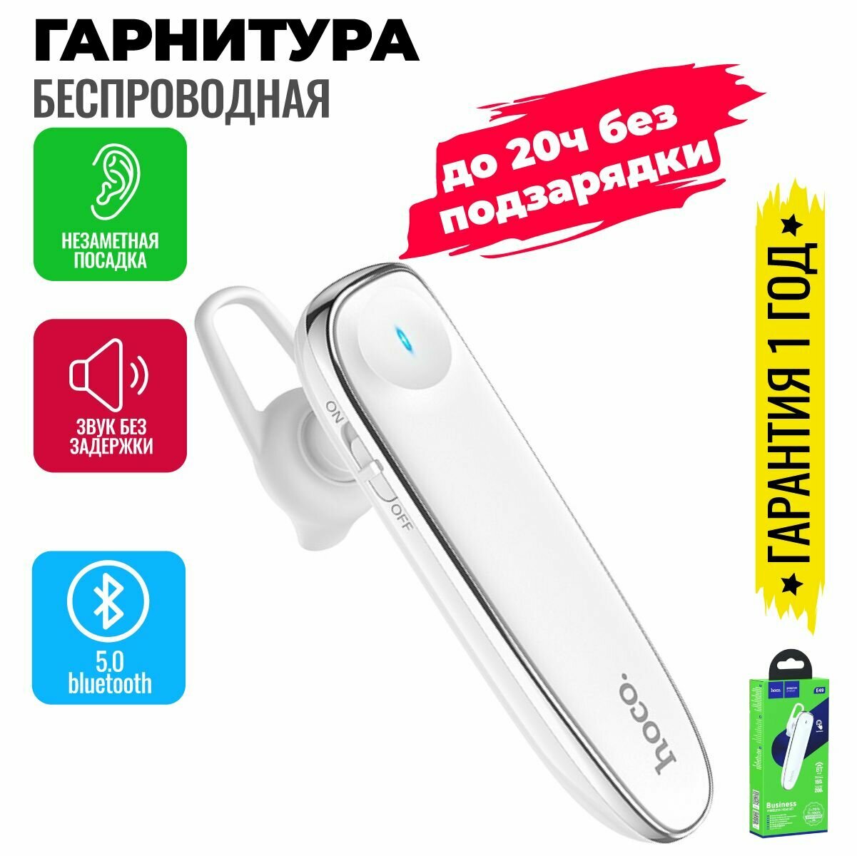 Беспроводная гарнитура Hoco E49, белый