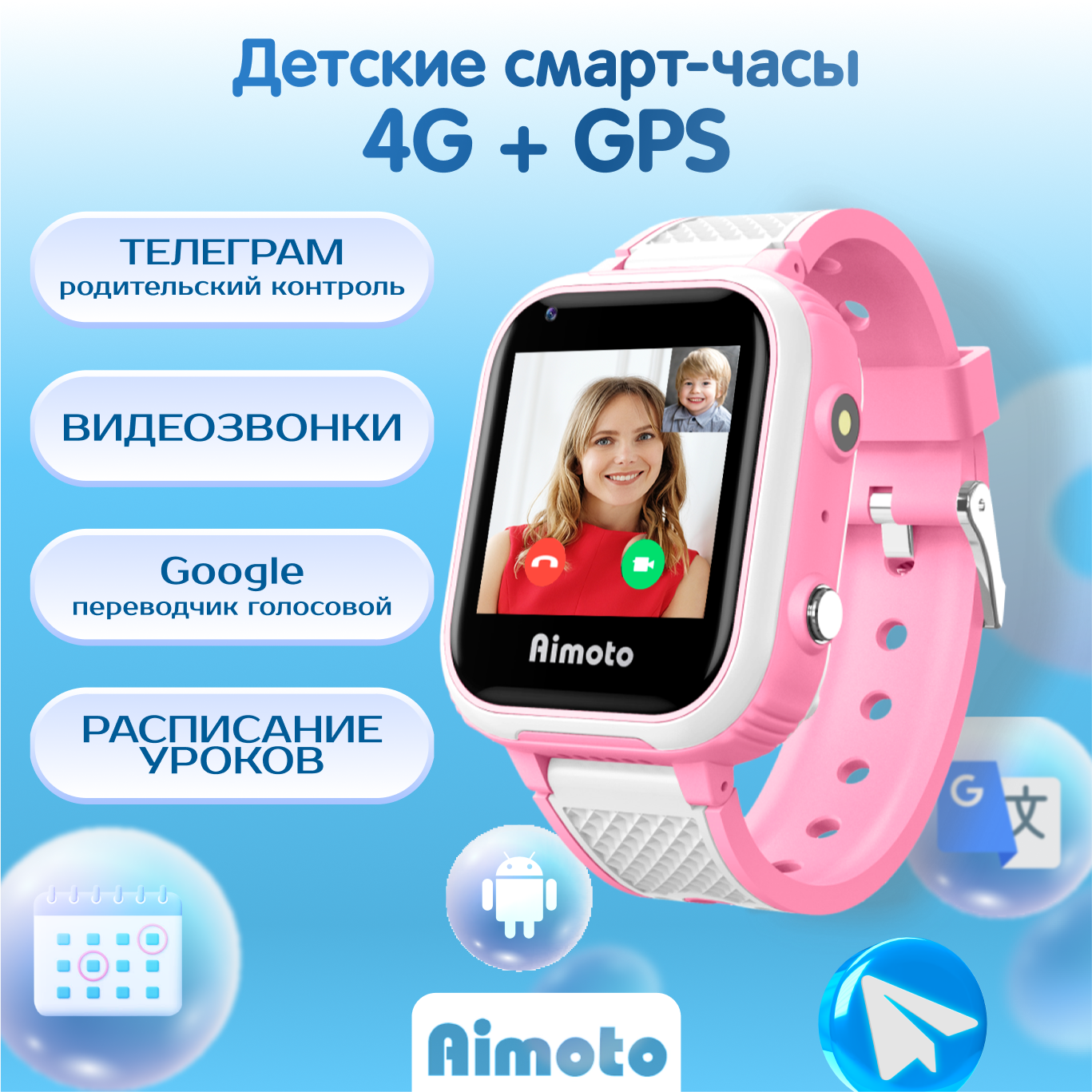 AIMOTO Pro Indigo 4G Детские умные часы (розовые)