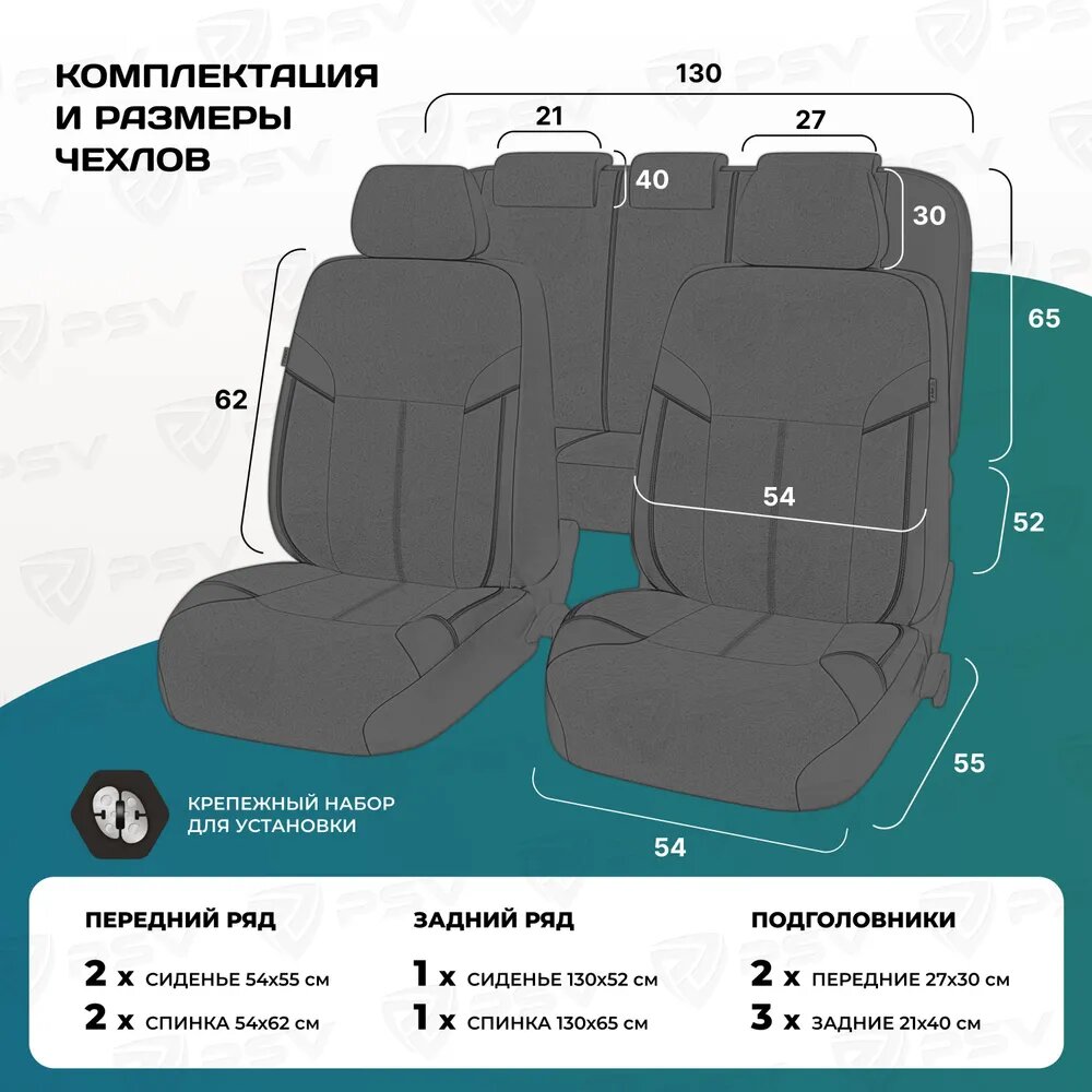 Накидка на сиденье PSV Kosmos комплект экокожа/лен черная отстрочка 9 пр. черная PSV 134931 | цена за 1 шт