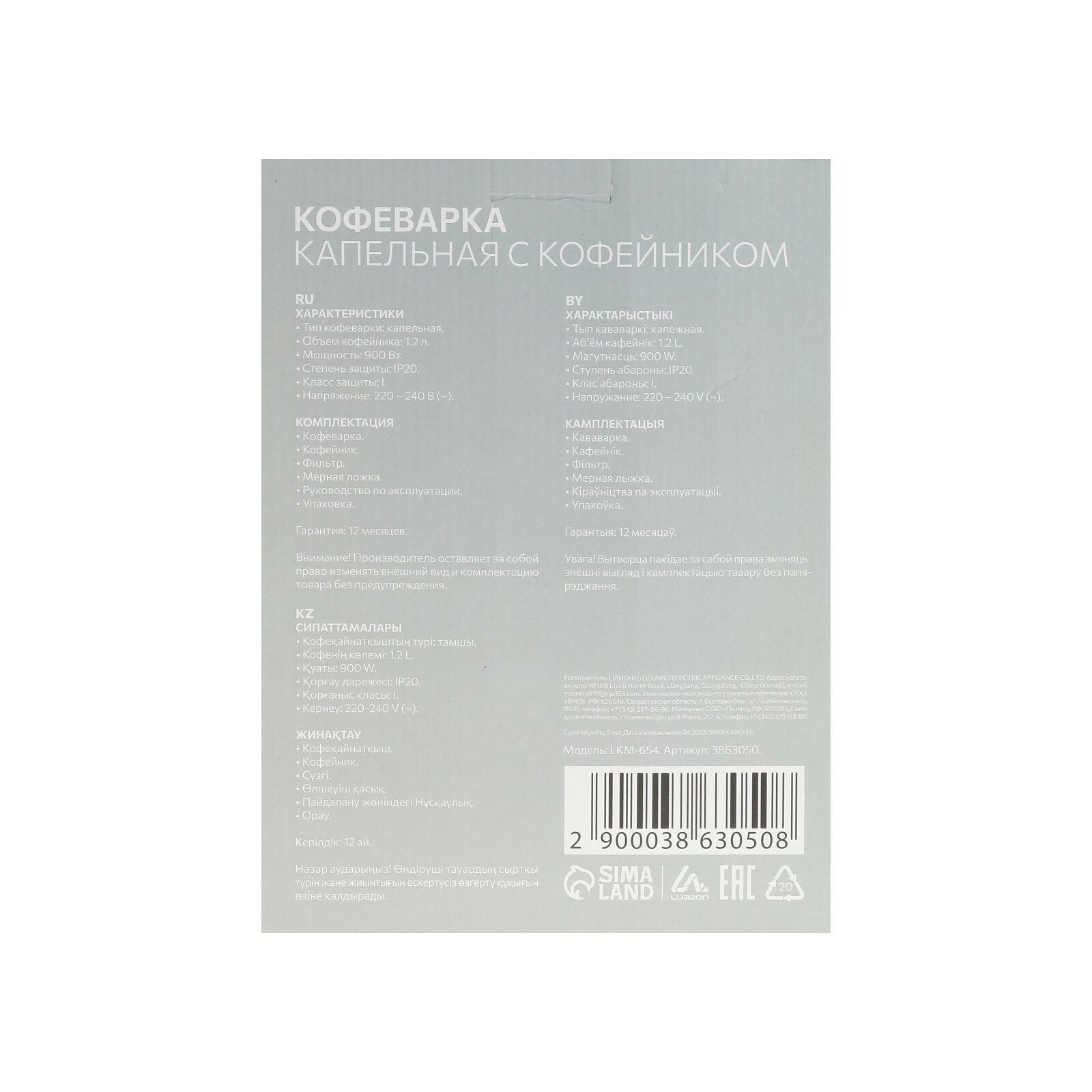 LUAZON HOME LKM-654 Кофеварка 3863050