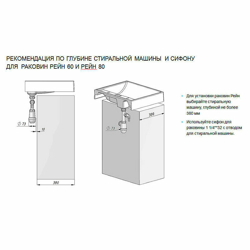 Раковина Акватон Рейн 60 над стиральной машиной