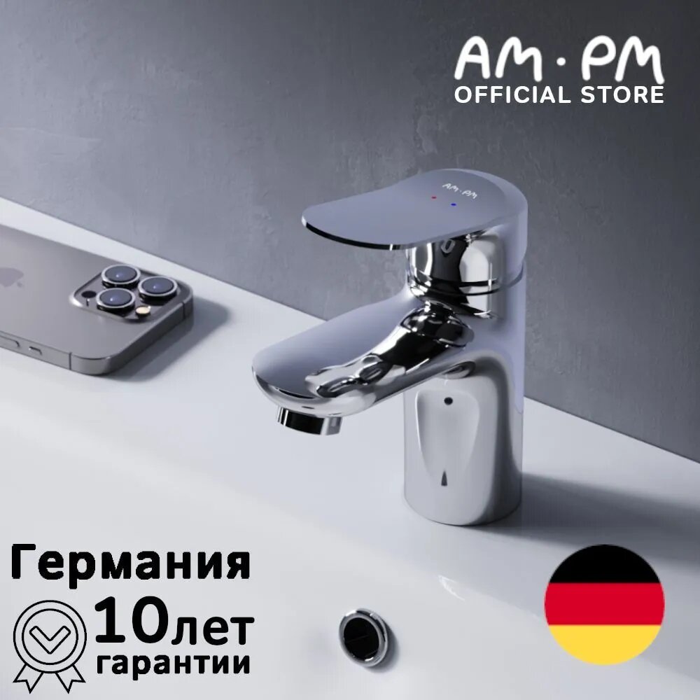 Купить Смеситель для раковины в ванную AM.PM Sunny F85C02100 хром, смесители для умывальника, керамический стабилизирующий картридж Soft Motion, покрытие Everlast, латунь, Гарантия 10 лет, Германия