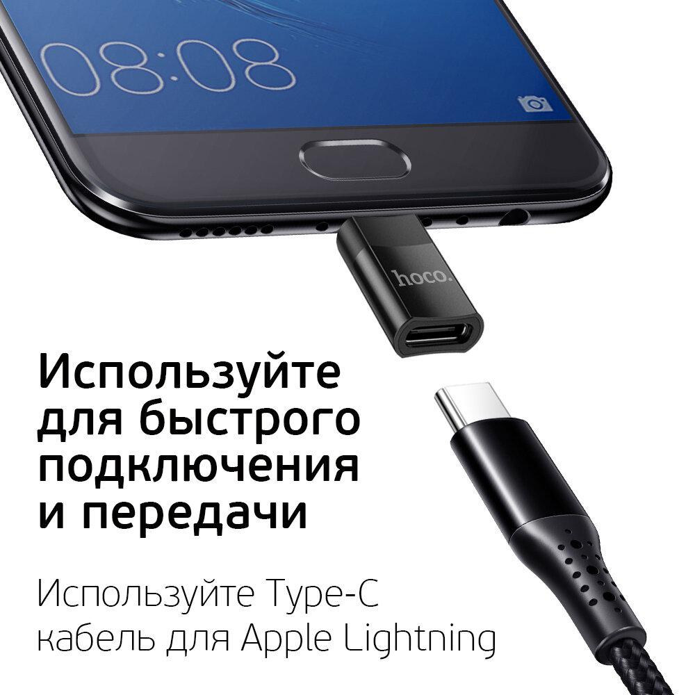 Купить Адаптер OTG Hoco UA17 iPhone male to Type-c female, черный