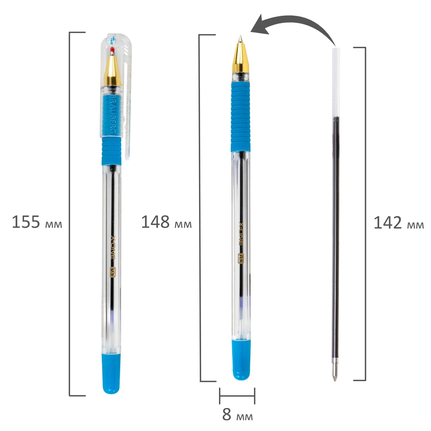 Ручки шариковые синие набор 12 штук тонкие для школы с грипом, линия письма 0,35 мм, Brauberg X-ONE, 143986 интересное: