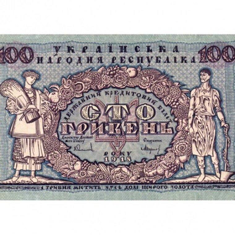 Кредитный Билет 100 гривен 1918 года Украинская Республика копия арт. 19-7560 интересное: