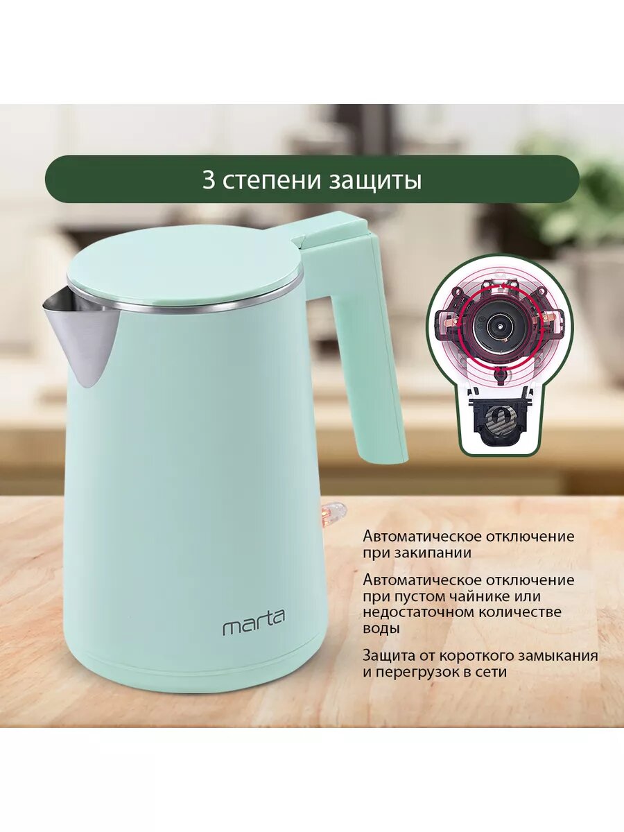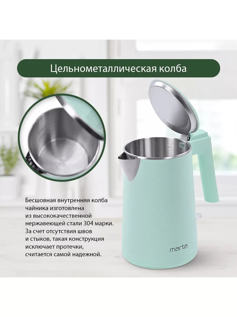 Чайник Marta MT-4591 белый жемчуг Мощность-1200W, Объем-1,0л, двойные стенки: корпус сталь 304 + пла .