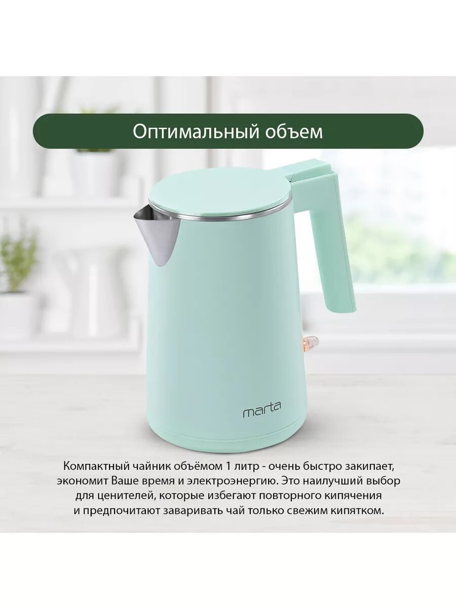 Чайник электрический MARTA MT-4591 1200 Вт, 1,0 л, светлая яшма