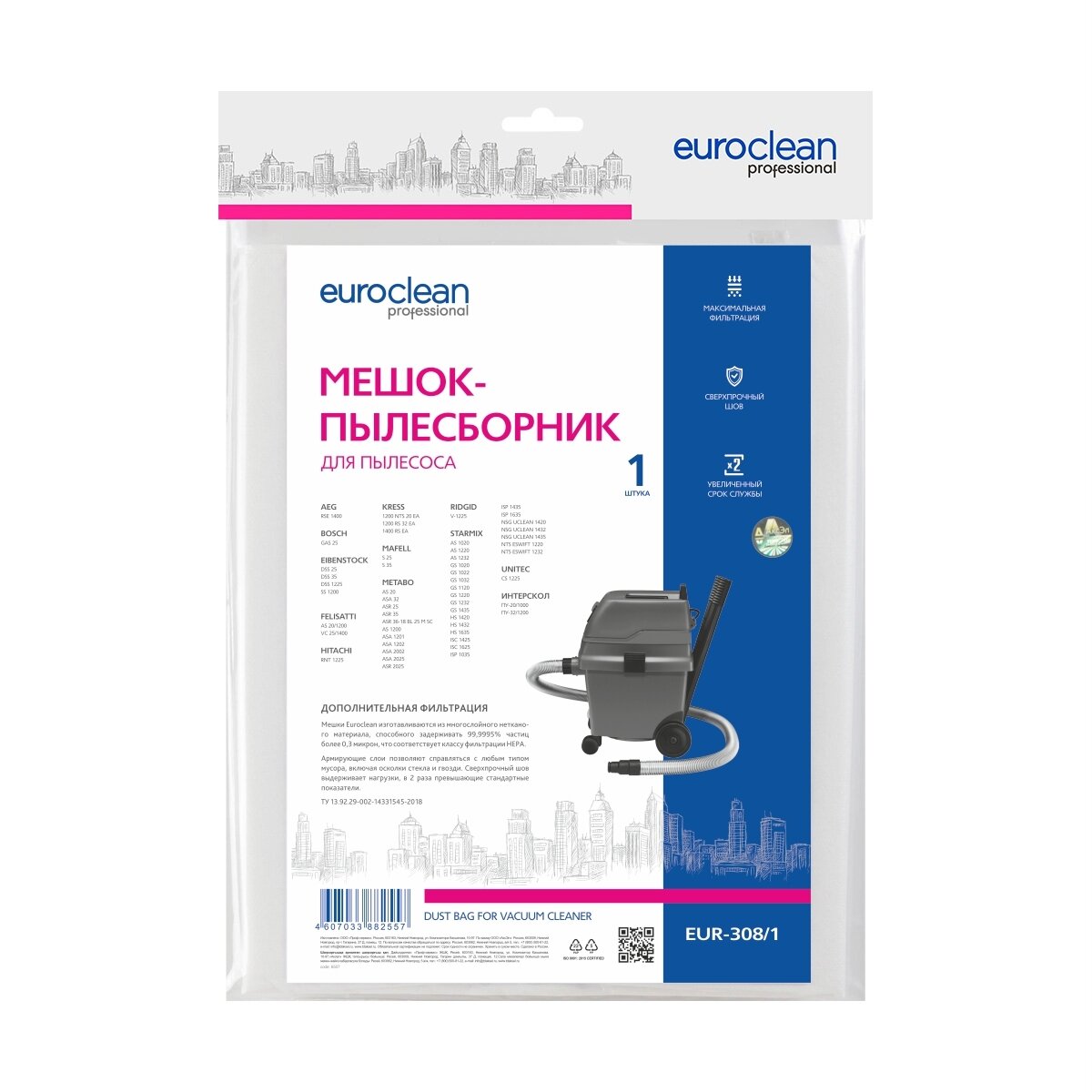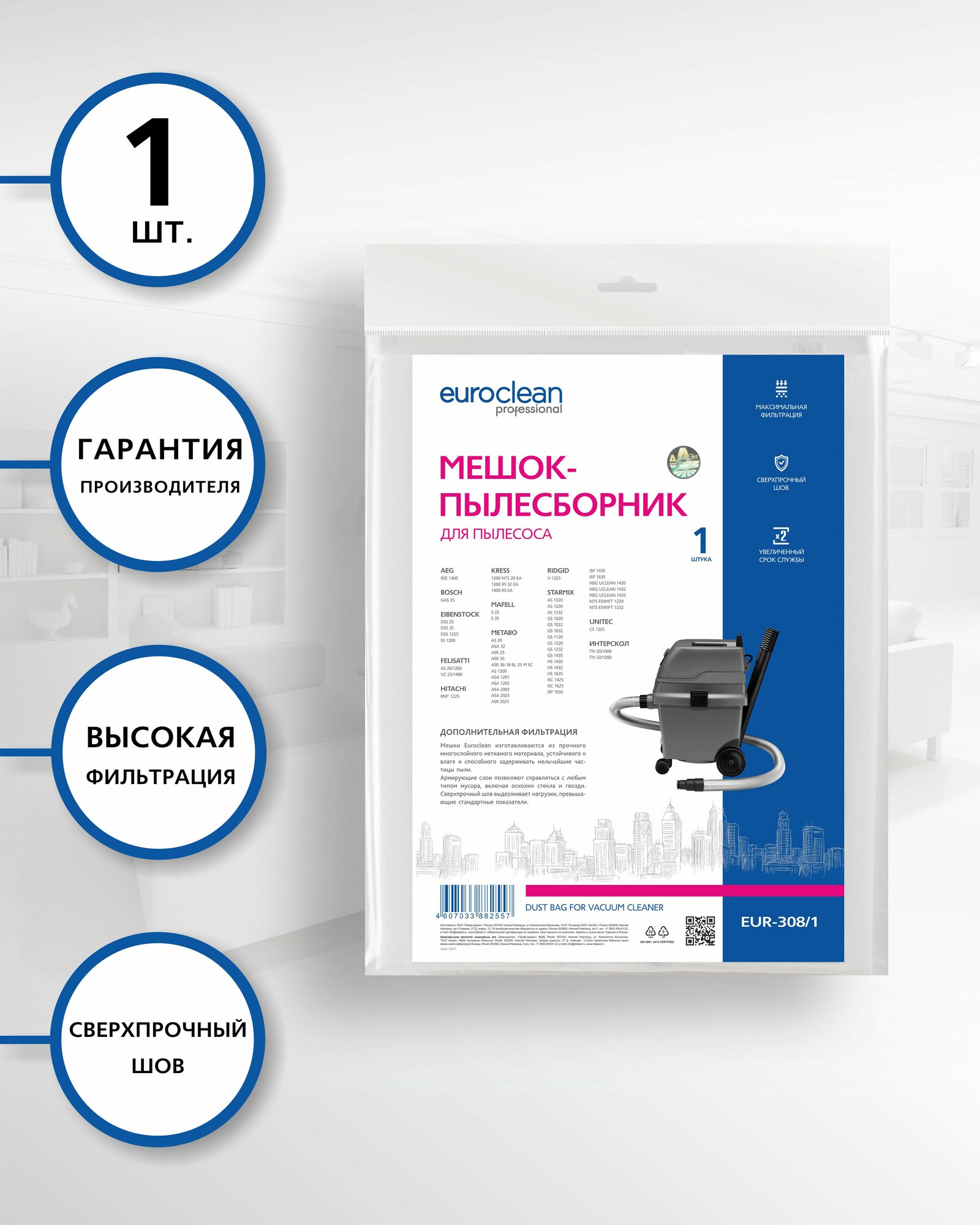 Купить Euroclean EUR-308/1 Мешок для пылесоса BOSCH GAS 25 KRESS 1400 ИНТЕРСКОЛ ПУ-32/1200 STARMIX FB20/25/35 AEG FELISATTI HITACHI METABO 1 шт. синтетические / пылесборник