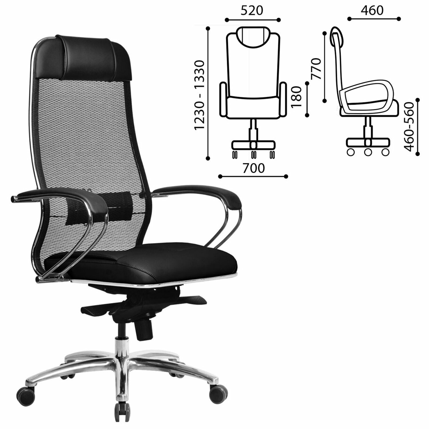 Кресло метта Samurai SL-3.04, на колесиках, сетка/кожа, черный плюс [z302689405]