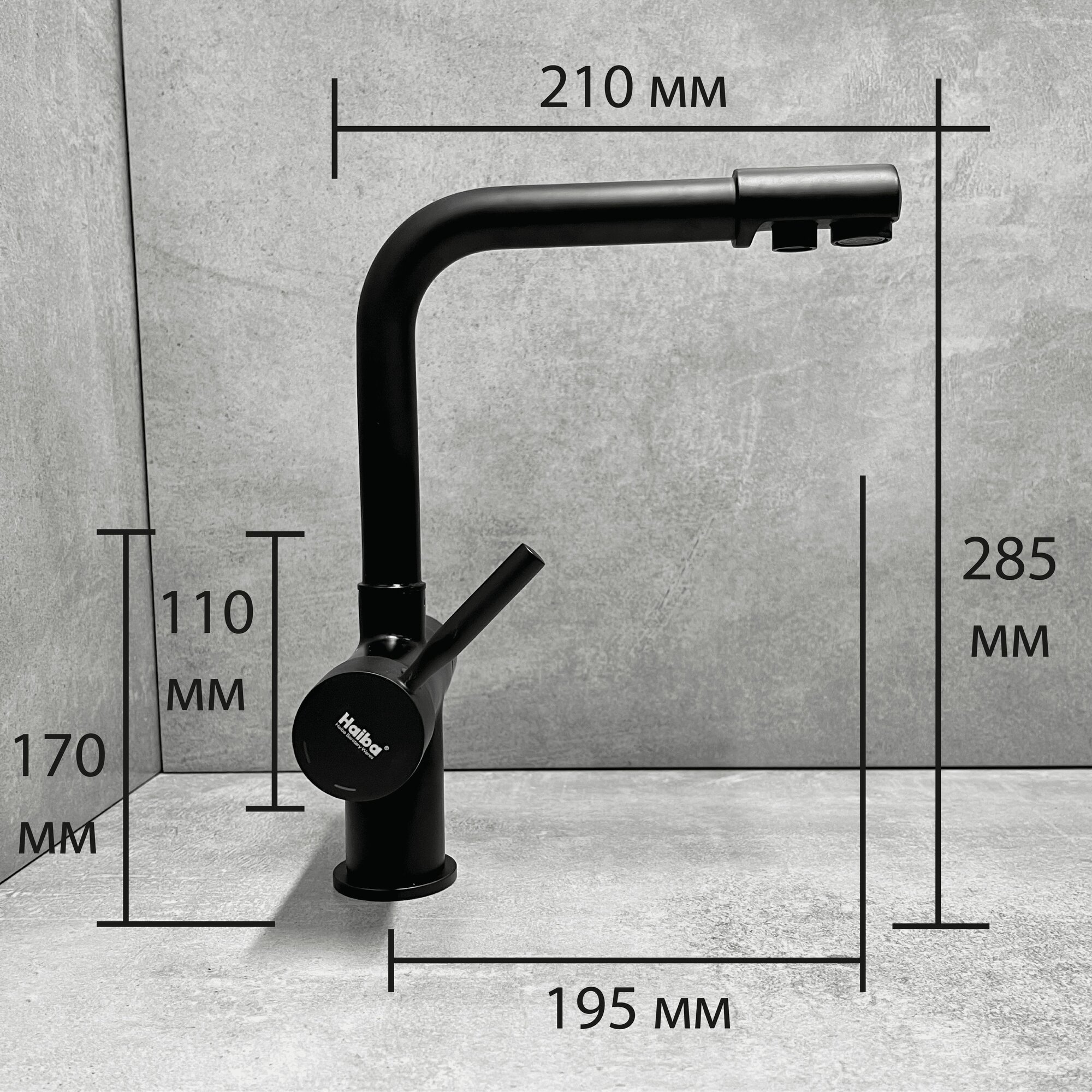 Смеситель для кухни Haiba HB70088-7 с подключением фильтра питьевой воды, черный