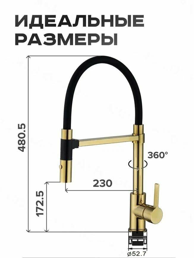 Премиальный смеситель с гибким изливом и фильтром Rose.