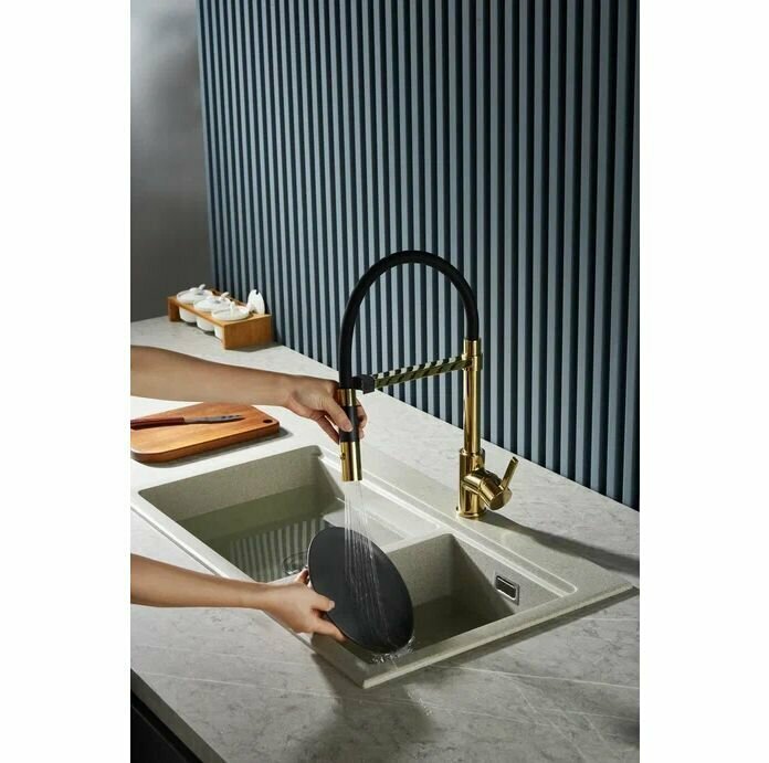 Смеситель для кухни с гибким изливом ROSE R133E, латунь, цвет золото