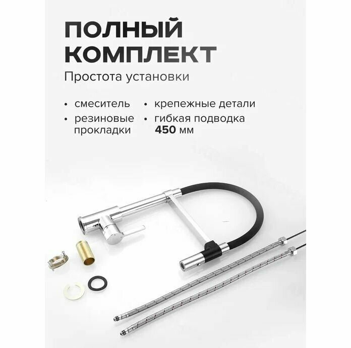 Смесители для кухни с гибким изливом и подключением фильтра ROSE R558 (латунь, цвет хром)