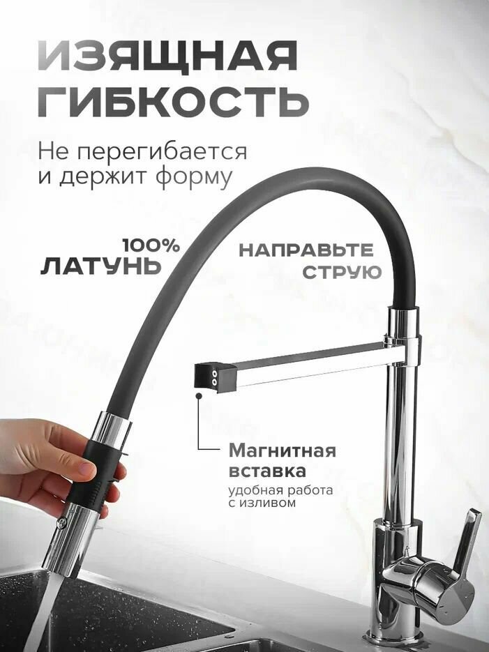Премиальный смеситель с гибким изливом и фильтром Rose.