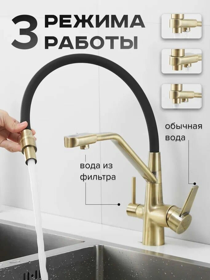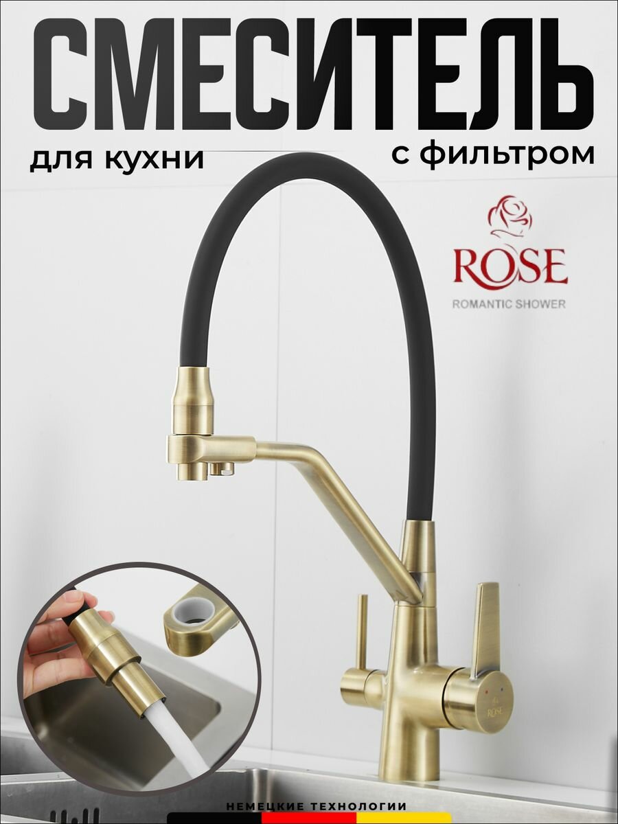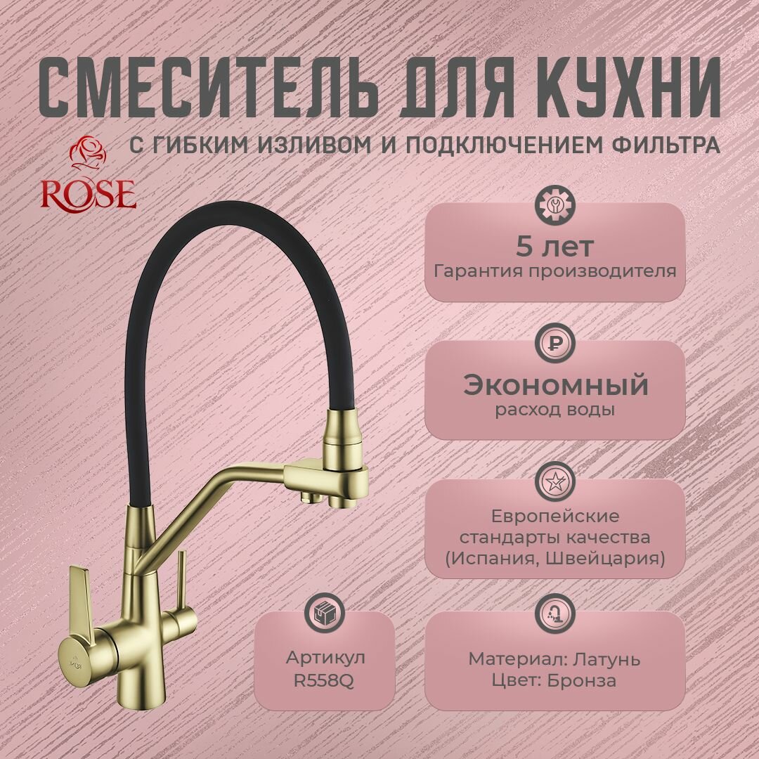 Смесители для кухни с гибким изливом и подключением фильтра ROSE R558Q (латунь, цвет бронза)