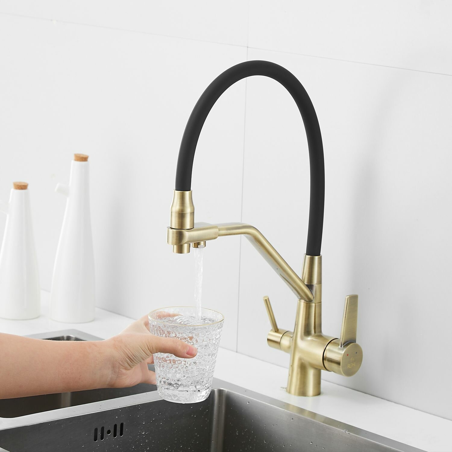 Смеситель для кухни с гибким изливом и фильтром для воды Rose R558L