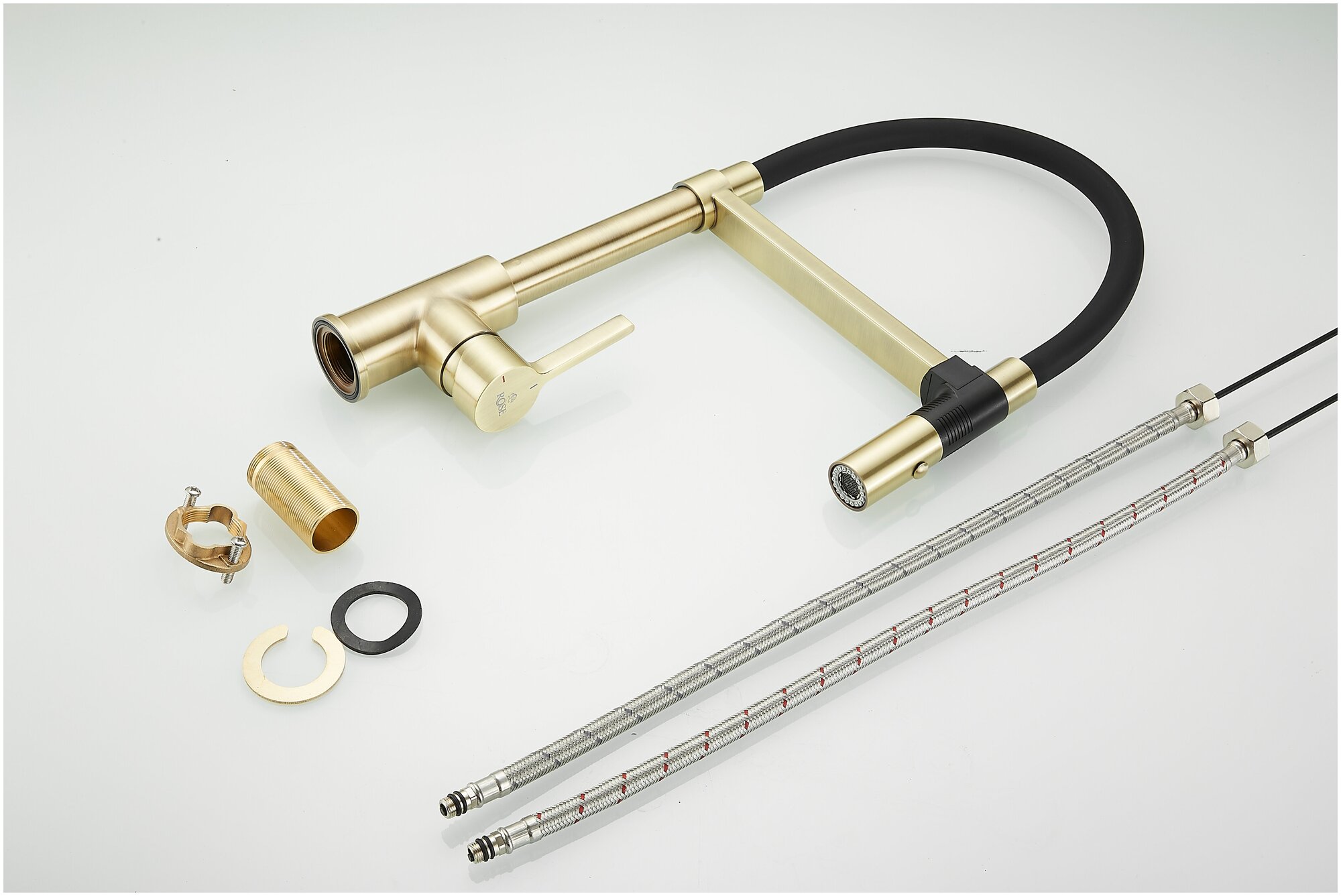 Смеситель для кухни с гибким изливом ROSE R133E, латунь, цвет золото